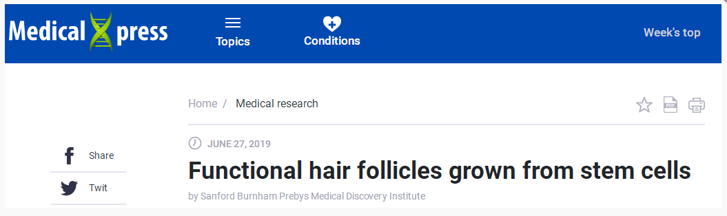 Sanford Burnham Prebys的科學家利用人體誘導的多能干細胞(iPSCs)創(chuàng)造了一種通過皮膚生長的自然頭發(fā),這是一項可以徹底改…