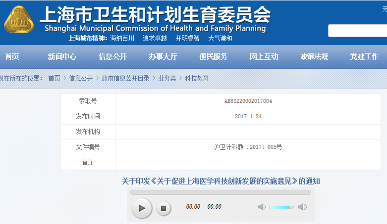 上海衛(wèi)計(jì)委:正式發(fā)布了《關(guān)于促進(jìn)上海醫(yī)學(xué)科技創(chuàng)新發(fā)展的實(shí)施意…