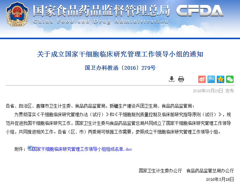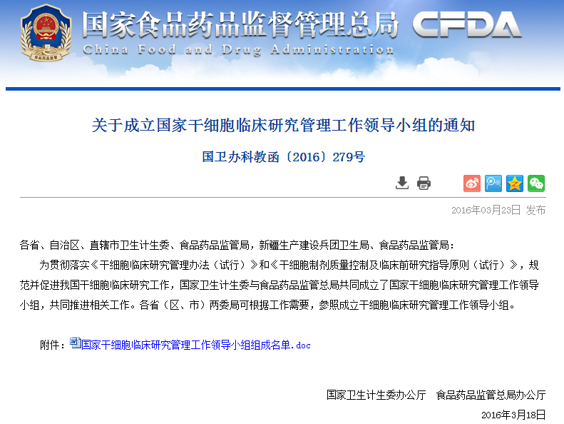 各省、自治區(qū)、直轄市衛(wèi)生計(jì)生委、食品藥品監(jiān)管局,新疆生產(chǎn)建設(shè)兵團(tuán)衛(wèi)生局、食品藥品監(jiān)管局: 根據(jù)《干細(xì)胞臨床研究管理辦法(試行)》(國衛(wèi)科教發(fā)〔2015〕48號)要求,國家衛(wèi)生計(jì)生委與食品藥品監(jiān)管總局共同成立由干細(xì)胞基礎(chǔ)及臨床相關(guān)專業(yè)、干細(xì)胞制劑…